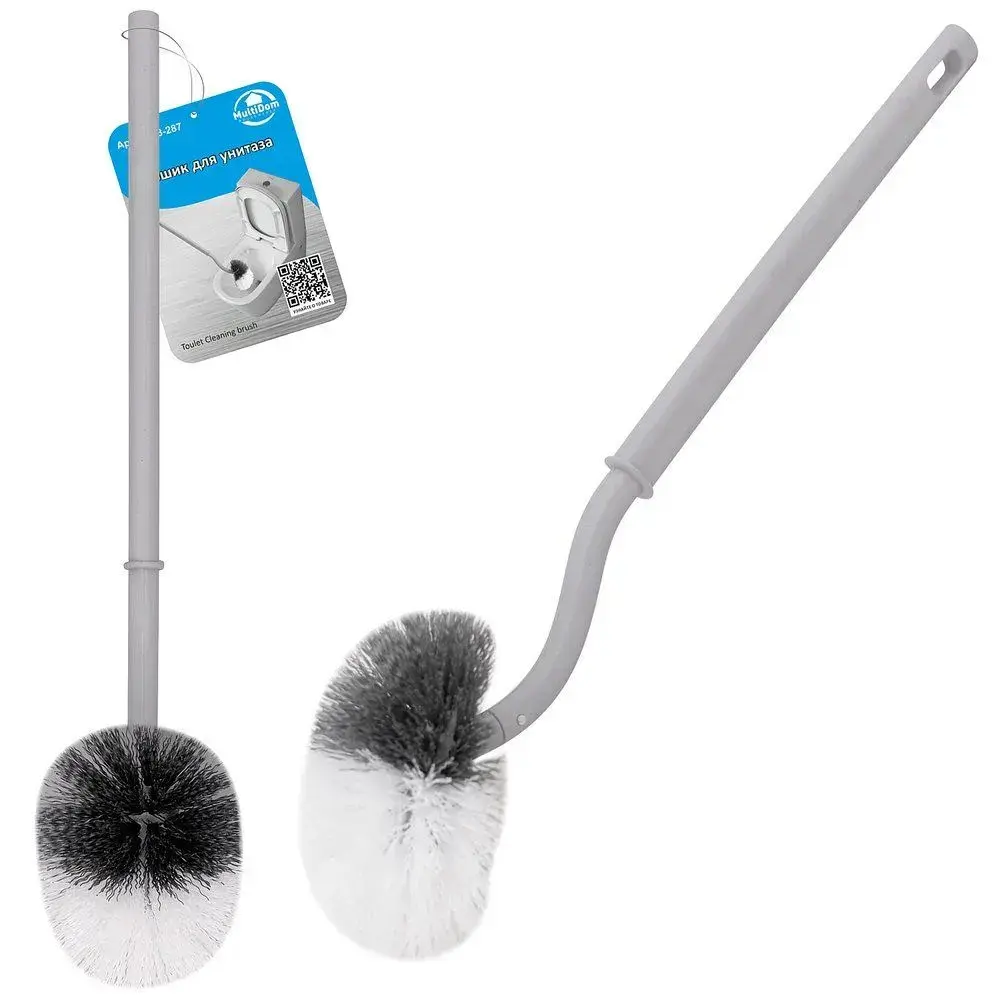 Ершик для унитаза с пластиковой ручкой 39 см, серый с черно-белой щетиной, отверстие для подвешивания