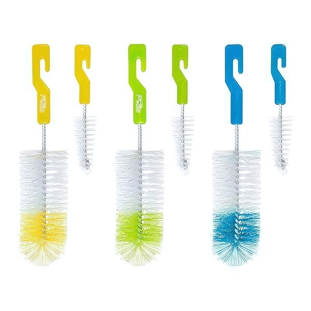 Как использовать: используйте большой ершик для чистки стенок бутылочек, маленький — для внутренней стороны сосок. На ручках предусмотрены выгнутые загибы, которые делают сушку и хранение максимально удобными. Перед первым использованием рекомендуется тщательно промыть изделия горячей водой и соблюдать инструкции по эксплуатации, указанные на упаковке.