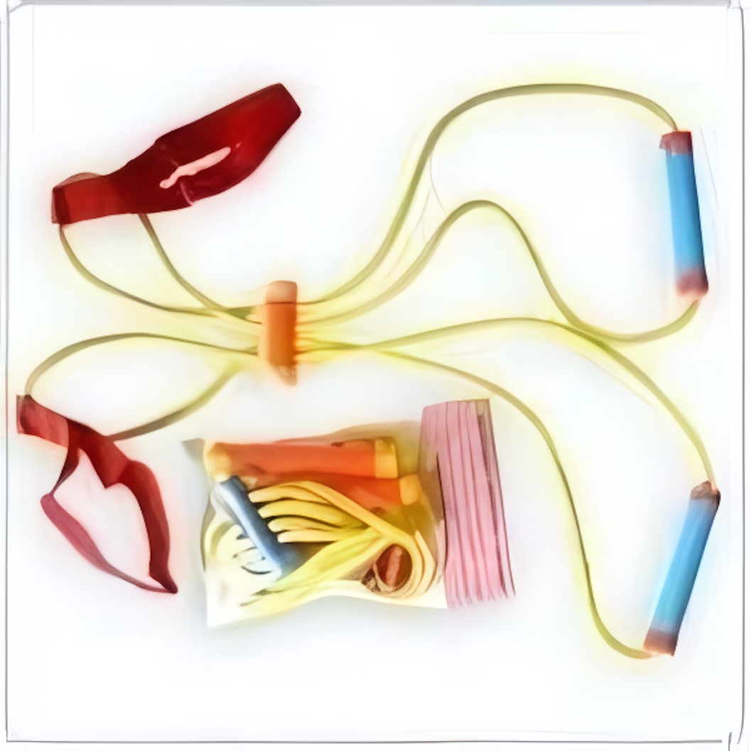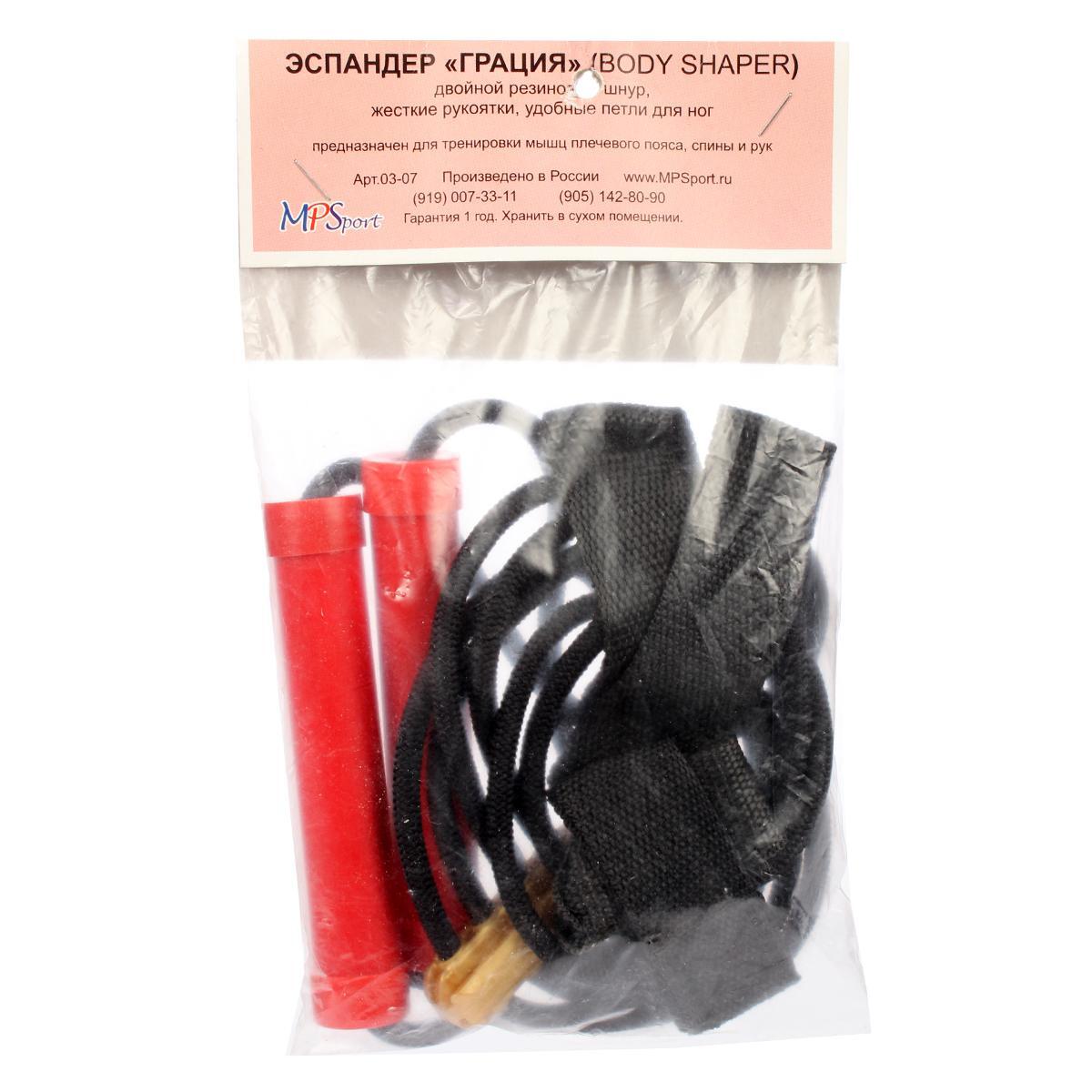 Эспандер 'Грация' обеспечивает необходимое сопротивление благодаря прочным текстильным петлям и жестким пластиковым ручкам. Его конструкция позволяет выполнять широкий спектр упражнений: