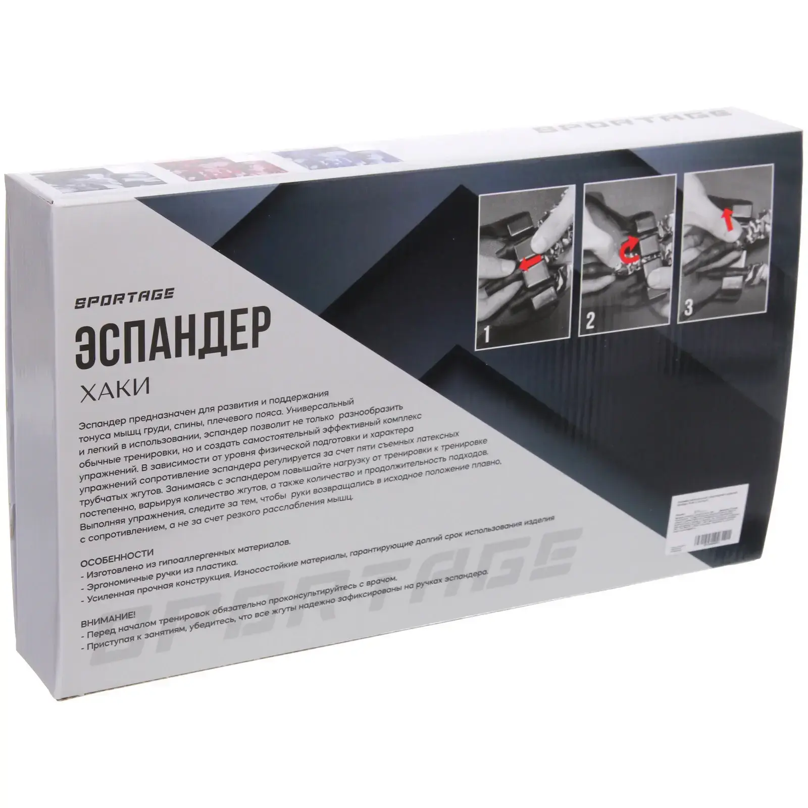 Эспандер имеет черные ручки, которые обеспечивают надежный захват и комфорт во время тренировок. Его длина составляет около 70-80 см, что позволяет выполнять широкий спектр упражнений. Благодаря своей конструкции, эспандер подходит для тренировки различных групп мышц, включая руки, грудные и спинные мышцы. Не упустите возможность улучшить свою физическую форму с эспандером Sportage!