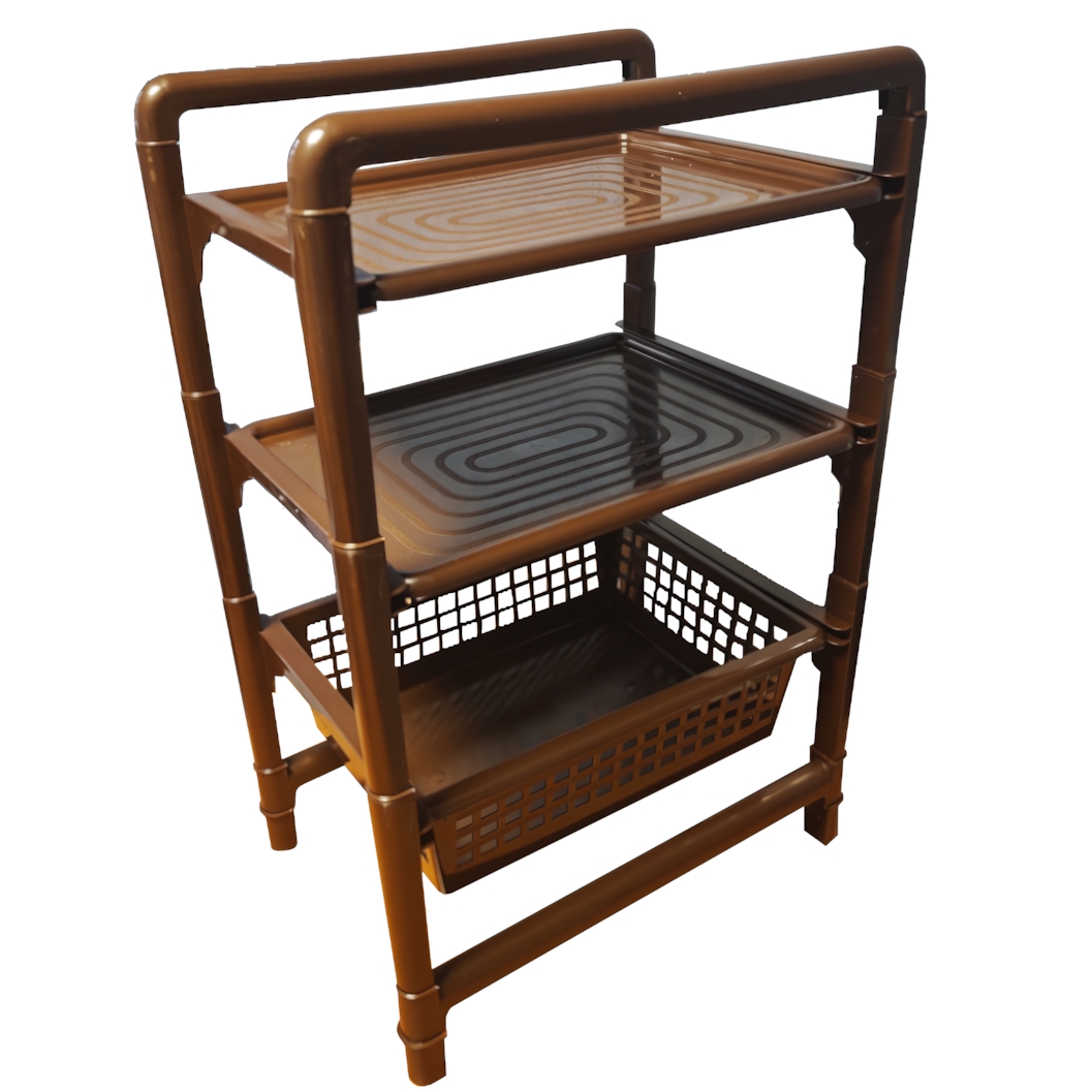 Этажерка с двумя полками и нижним ящиком поможет удобно организовать пространство в доме и держать все необходимое под рукой. Компактная и вместительная конструкция позволяет аккуратно разместить посуду, бытовые мелочи, косметику или хозяйственные принадлежности, сохраняя порядок и уют в помещении.
