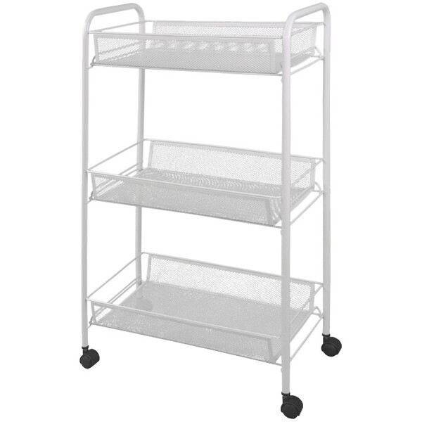 Размеры этажерки: 44 см в ширину, 25 см в глубину и 73,5 см в высоту. Она имеет три полки, что позволяет удобно организовать хранение. Благодаря колесикам, вы сможете легко перемещать этажерку по помещению, что делает её особенно удобной для использования в динамичной обстановке.