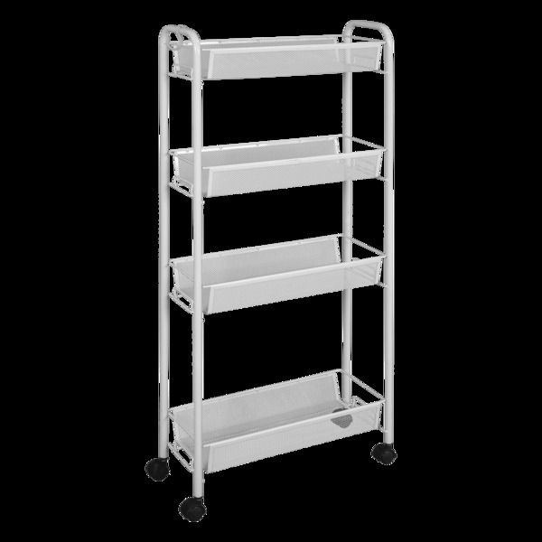 Этажерка оснащена четырьмя удобными корзинами, которые идеально подходят для хранения различных предметов — от книг и игрушек до кухонных принадлежностей. Увеличенное расстояние между нижними корзинами позволяет размещать высокие предметы, что добавляет ещё больше удобства в использовании. Пластиковые колеса обеспечивают мобильность, позволяя легко перемещать этажерку по комнате.