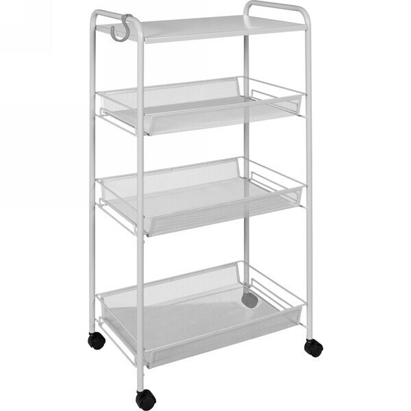 Этажерка идеально подходит для хранения различных предметов: от книг и игрушек до кухонных принадлежностей. Широкие корзины позволяют разместить даже крупные вещи, а увеличенное расстояние между нижними корзинами дает возможность хранить высокие предметы. Пластиковый крючок для мелочей поможет вам организовать пространство еще более эффективно.
