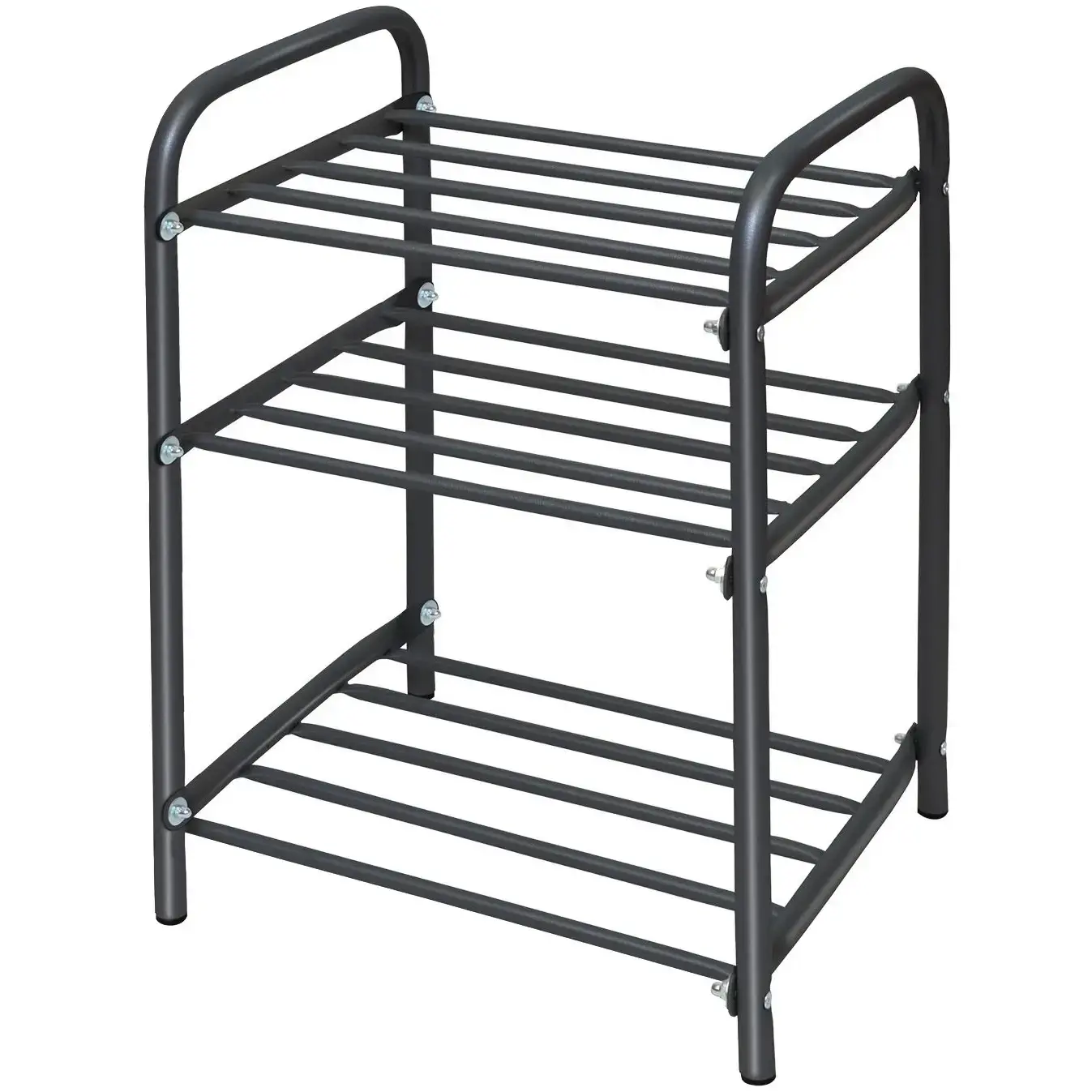 Эта этажерка для обуви станет идеальным решением для вашего дома, обеспечивая надежное и компактное хранение. С тремя полками, выполненными из прочного металла, она не только украсит ваш интерьер, но и поможет поддерживать порядок в обуви. Благодаря своему черному цвету, этажерка легко впишется в любой стиль оформления, добавляя нотку современности и элегантности.