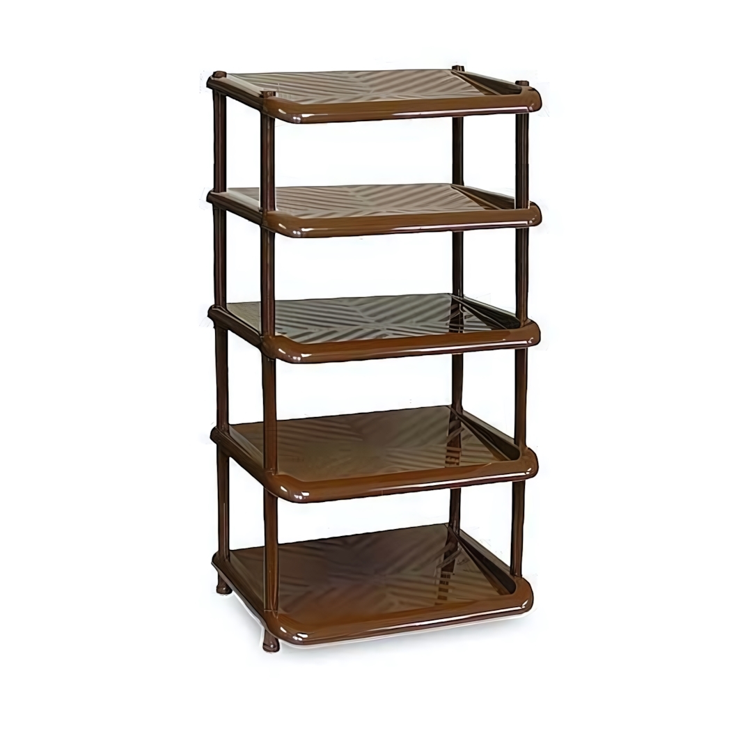 Этажерка имеет 5 полок, что позволяет разместить большое количество обуви в одном месте. Она подходит для хранения как повседневной, так и сезонной обуви. Удобная конструкция позволяет легко доставать и убирать обувь, что делает ее идеальным выбором для всей семьи.