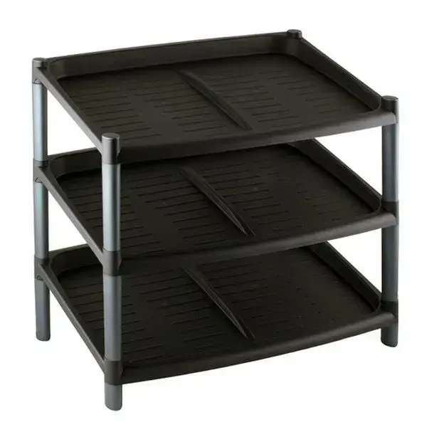 Комплект из трех пластиковых этажерок — идеальное решение для компактного хранения обуви, аксессуаров или бытовых мелочей. Устойчивая конструкция с рифленой поверхностью и бортиками обеспечивает безопасность и защиту от падения предметов.