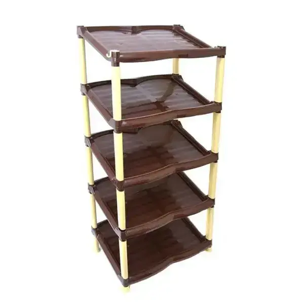 Этажерка для обуви 5-полочная, пластик, коричнево-желтая, компактное хранение
