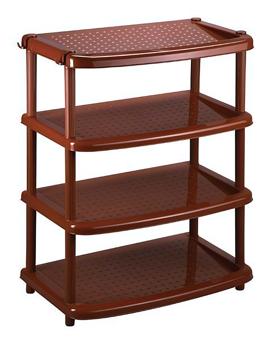 Этажерка для обуви «Паола», 4 полки, пластик, коричневая, с крючками и рожками, 47х30х80 см