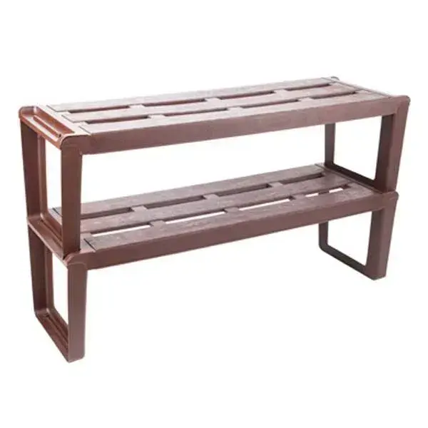 Этажерка для обуви Slip, 2 секции, цвет шоколадный, прочный пластик