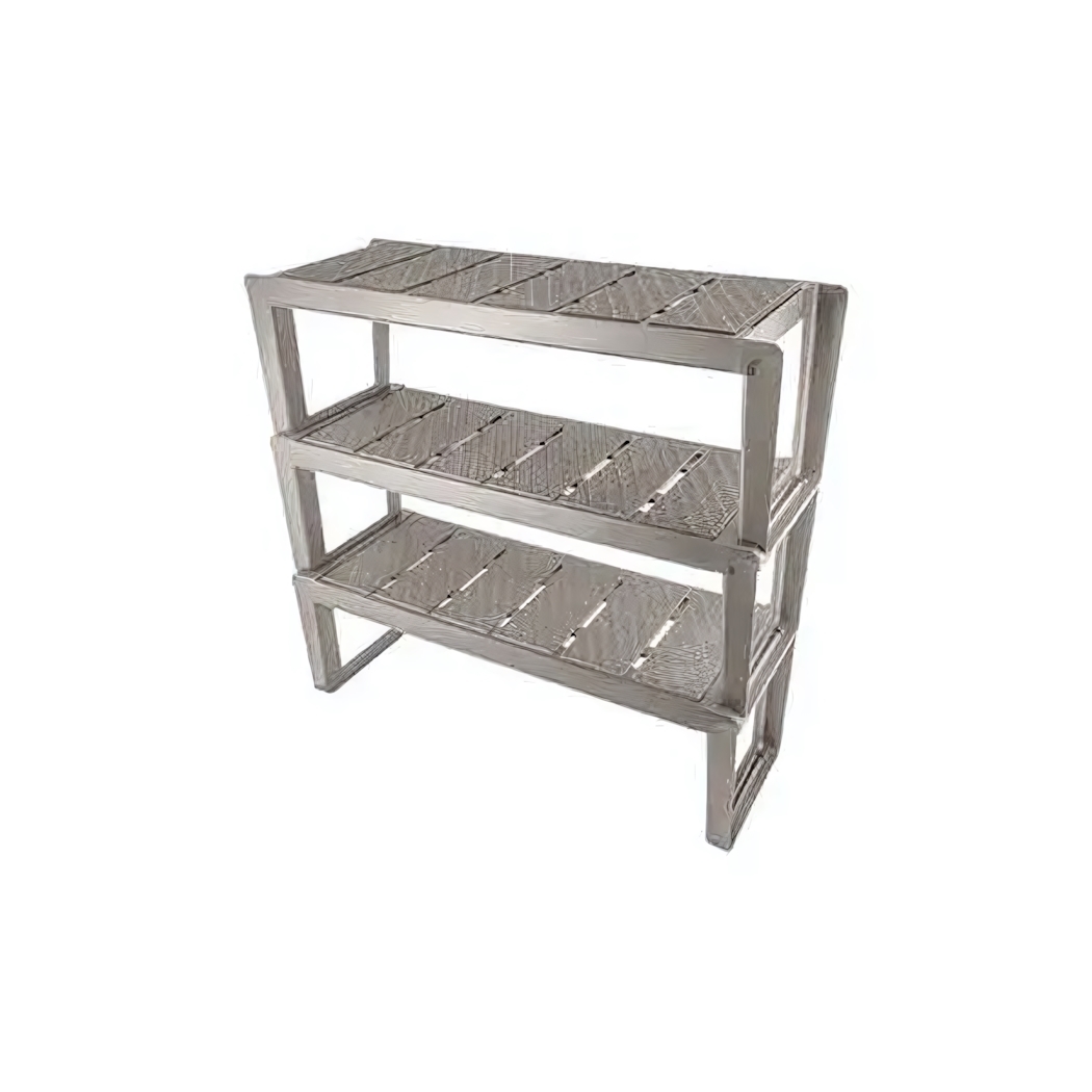 Подходит для хранения обуви, сумок и аксессуаров. Благодаря перфорированной поверхности полок обеспечивается естественная вентиляция. Ножки с широкой базой гарантируют устойчивость даже при полной загрузке.