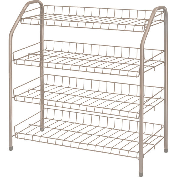 Этажерка имеет четыре решетчатых полки, которые обеспечивают отличную вентиляцию и позволяют хранить обувь в идеальном состоянии. Две боковые ручки делают ее перемещение легким и удобным. Эта модель подходит для использования в прихожей, ванной комнате или даже на балконе, что делает ее универсальным решением для любого пространства.