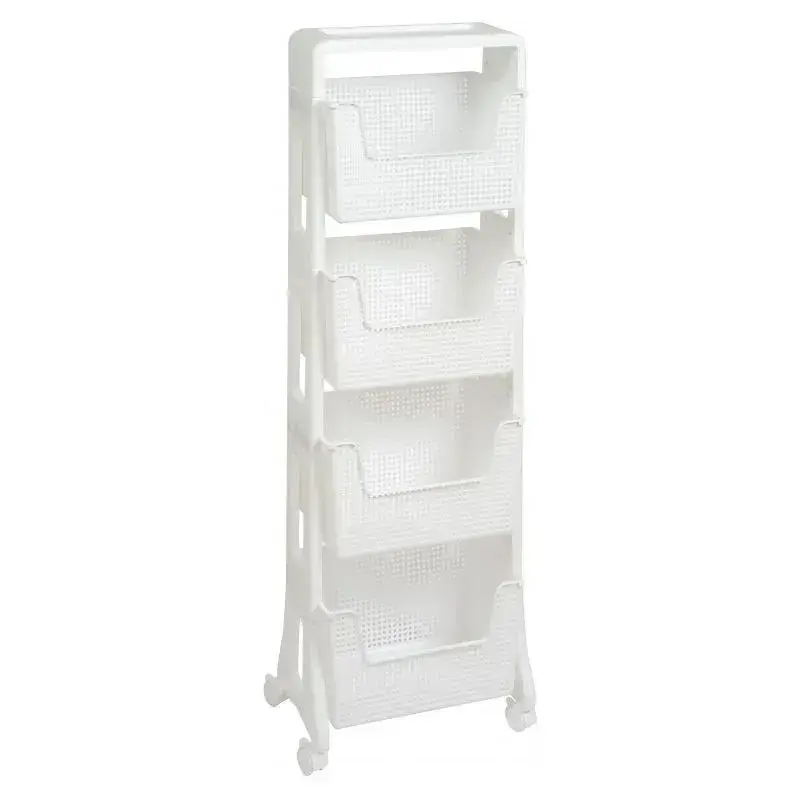 Этажерка напольная 'Лофт' на колесах, 4 яруса, белая, пластик