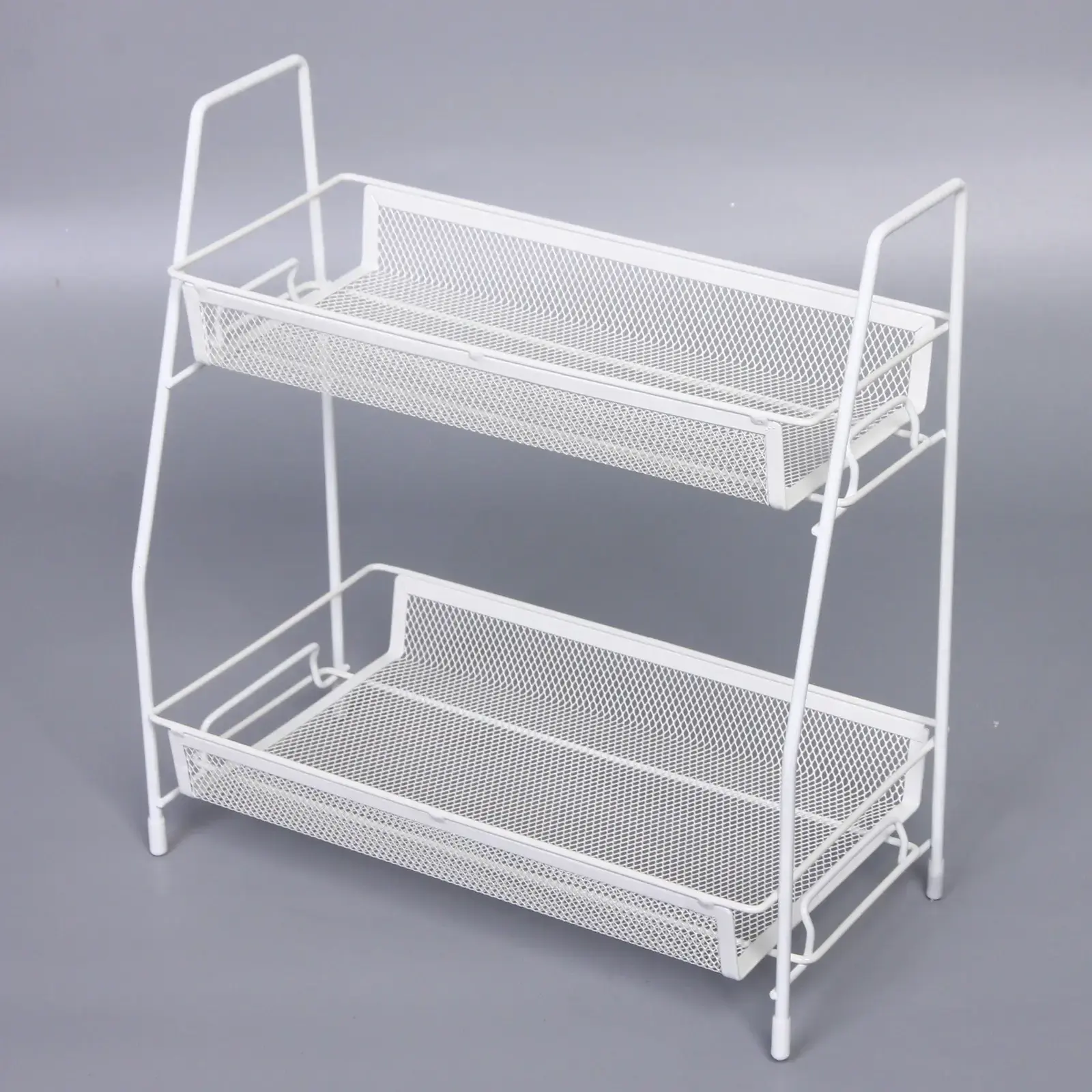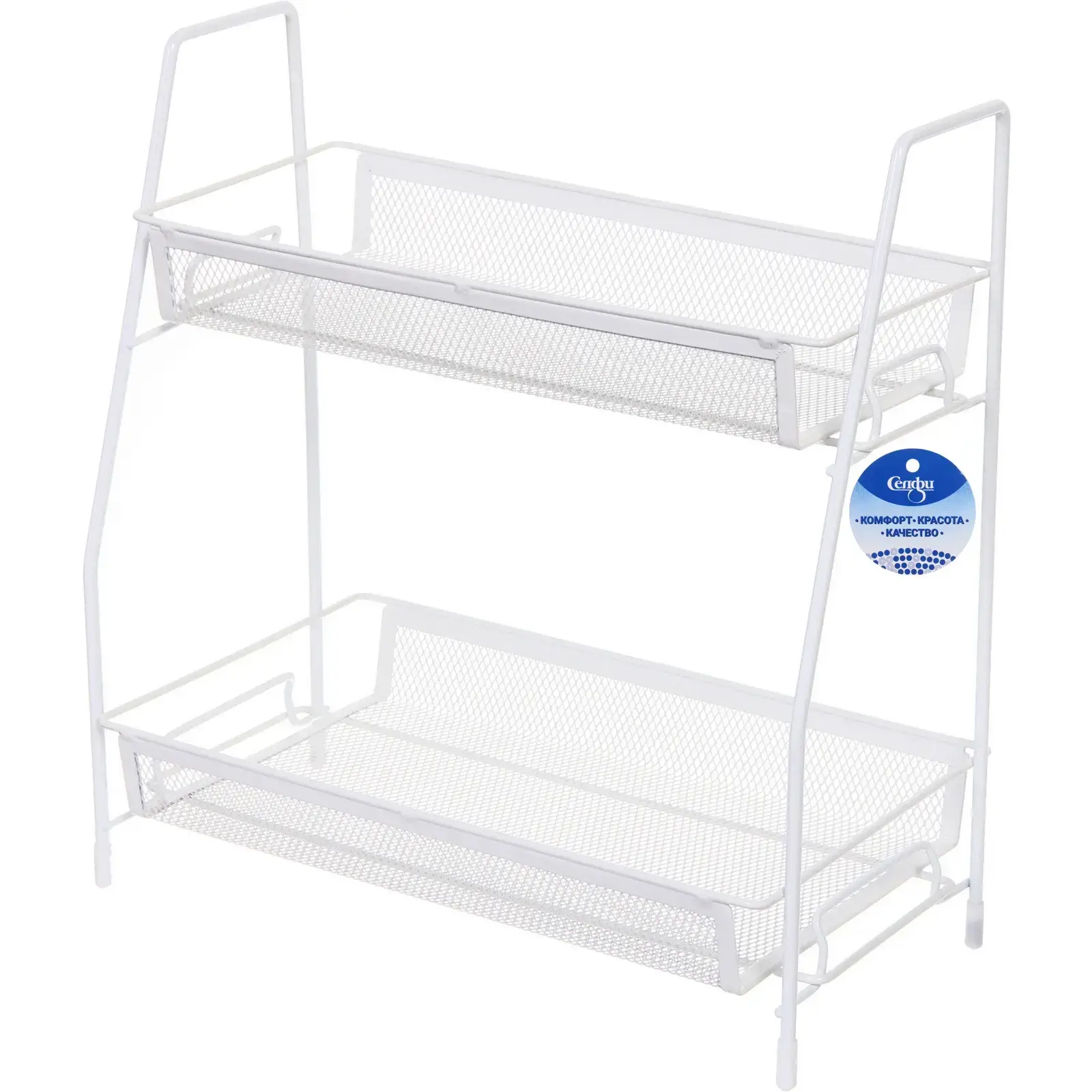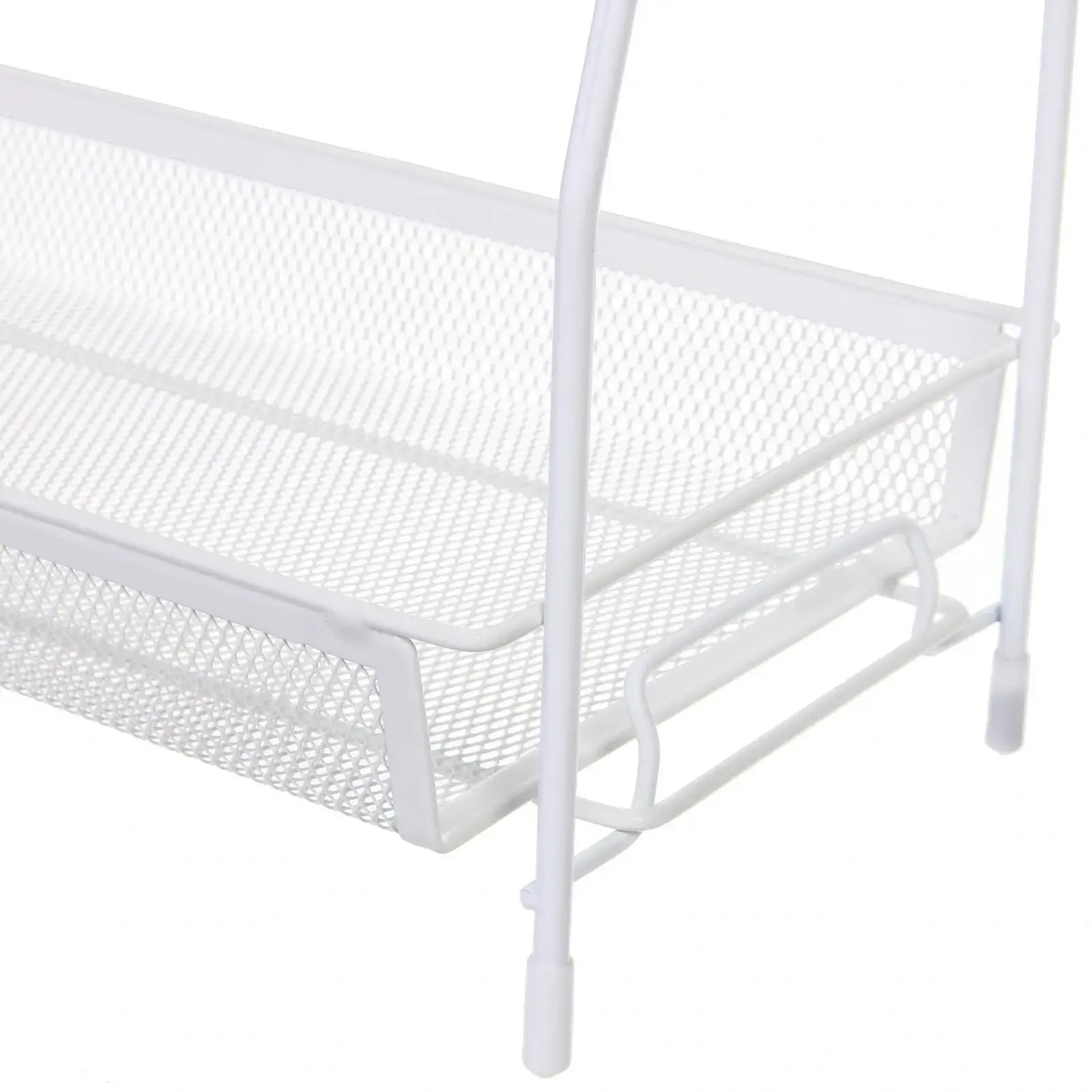 Белый цвет и минималистичный дизайн делают изделие универсальным решением для любого помещения. Металлическая конструкция обеспечивает долговечность использования, а сетчатая структура позволяет содержимому 'дышать'. Два вместительных яруса помогут эффективно разделить предметы по категориям.