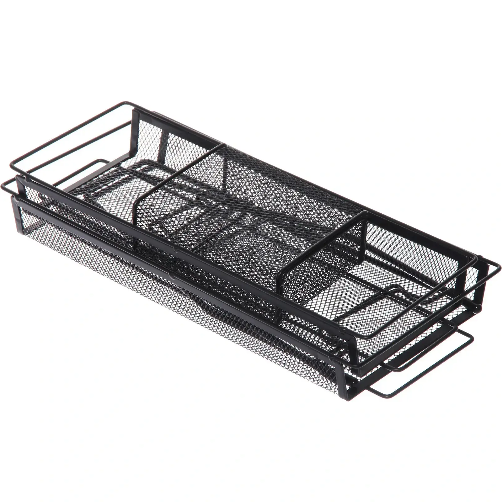 Органайзер настольный «ФАНАДЕРО», 2 яруса, металл, боковой карман, черный, 41х17х33см