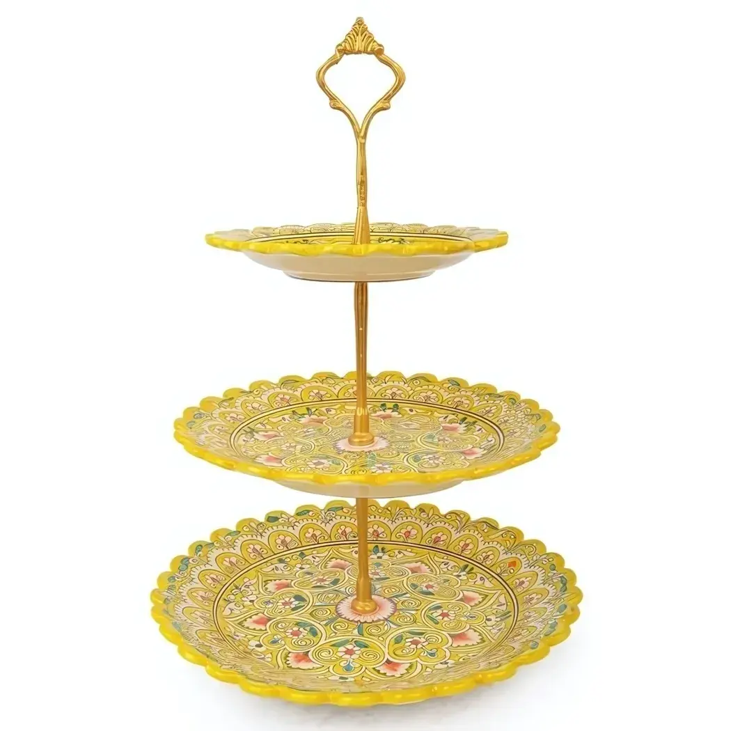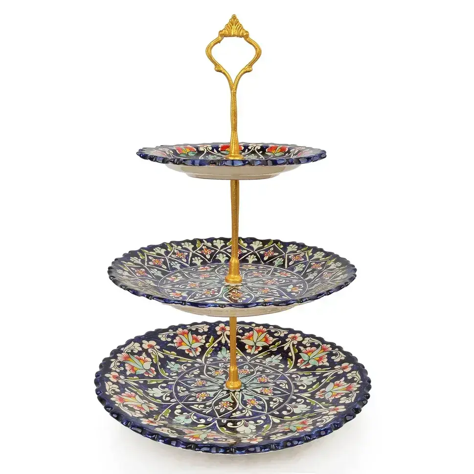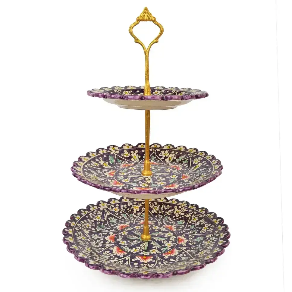 Трёхъярусная подставка с цветочными узорами создана, чтобы превратить подачу угощений в произведение искусства. Золотистая стойка и ручка добавляют торжественности, а прочная керамика гарантирует долговечность использования.
