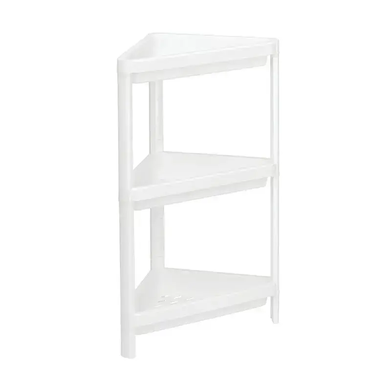 Этажерка угловая для компактного хранения, 3 пластиковые полки, белый цвет