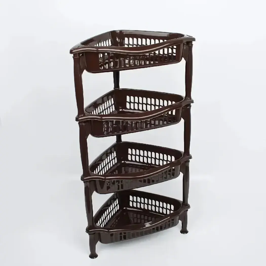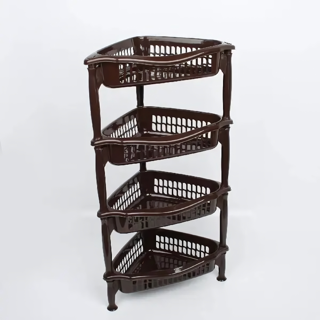 Эта угловая этажерка идеально подходит для организации порядка в небольших помещениях. Благодаря продуманной конструкции она эффективно использует угловое пространство, предоставляя 4 полноценных яруса для хранения банных принадлежностей, кухонной утвари или чистящих средств.