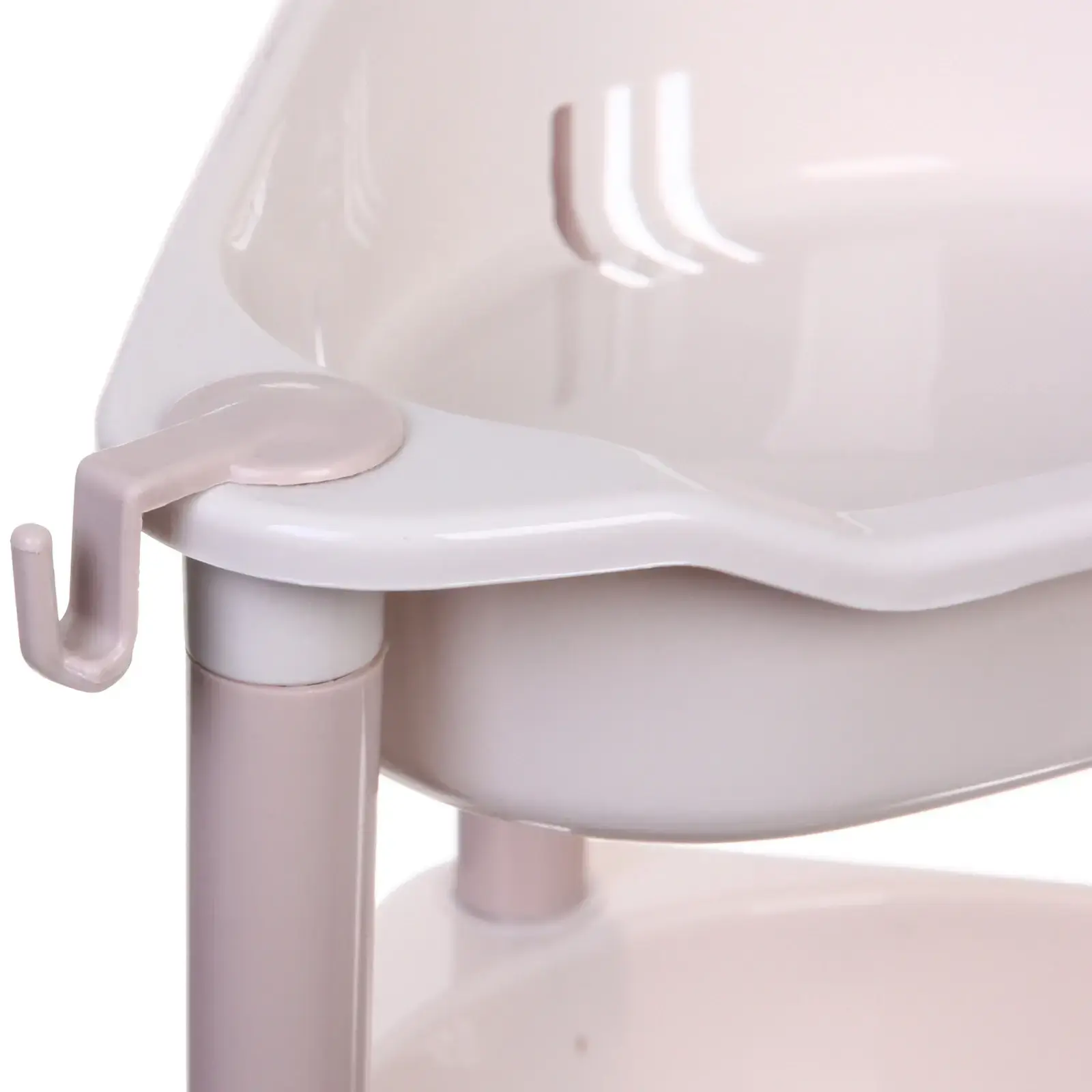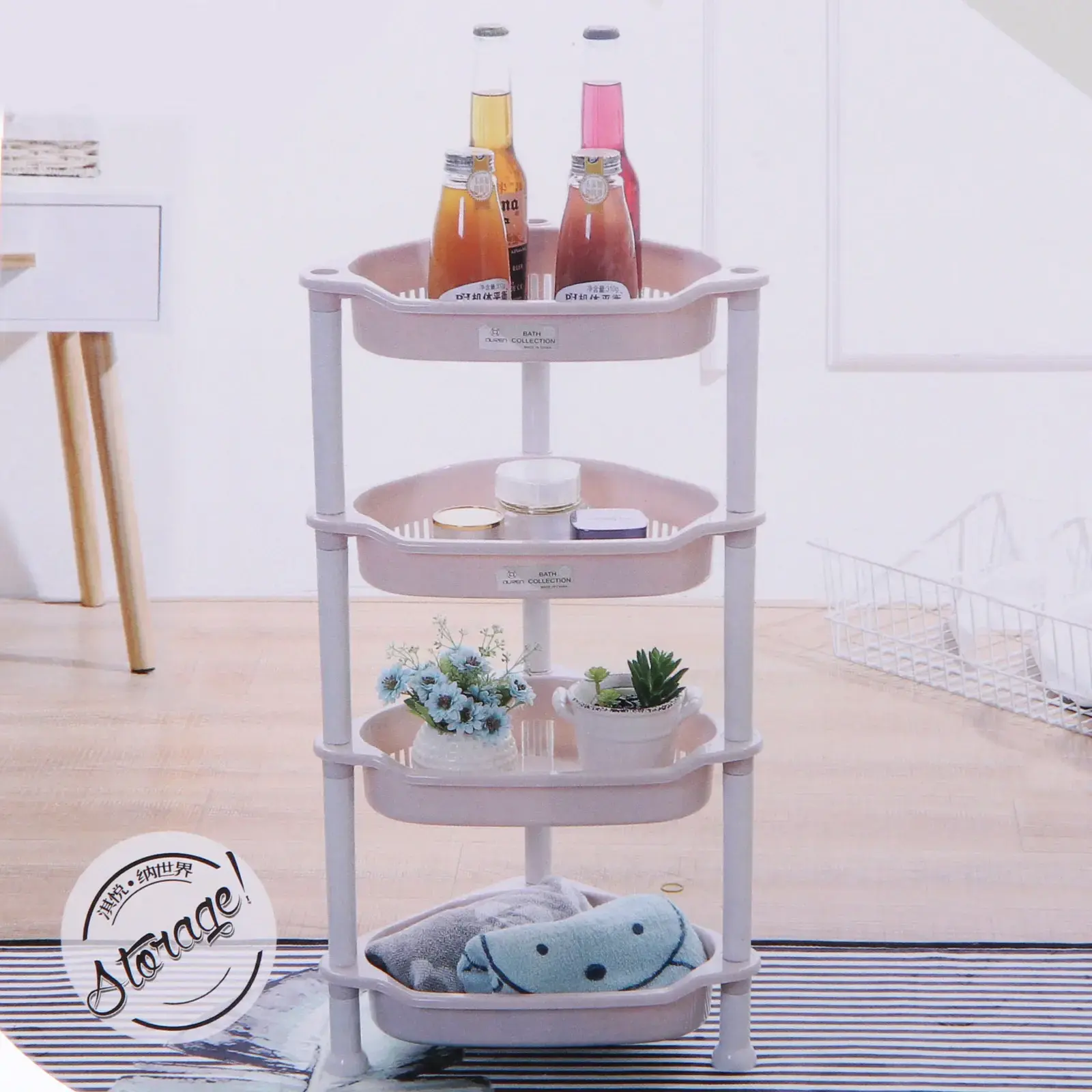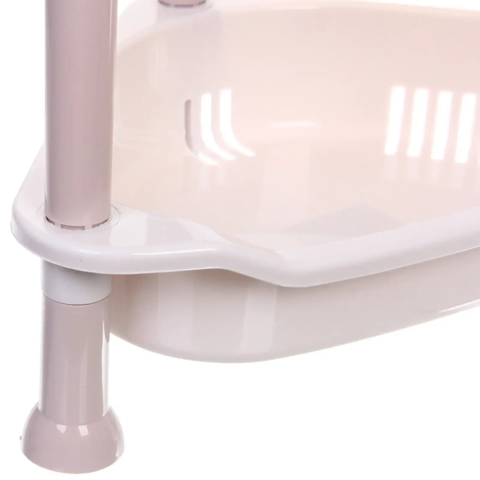 Этажерка предназначена для хранения различных предметов — от косметики до кухонных принадлежностей. Она отлично подходит для использования в ванной, кухне или комнате. Легкий и прочный пластиковый материал обеспечивает долговечность и простоту в уходе. Установить этажерку можно в любом углу, что позволяет сэкономить пространство и сделать его более функциональным.