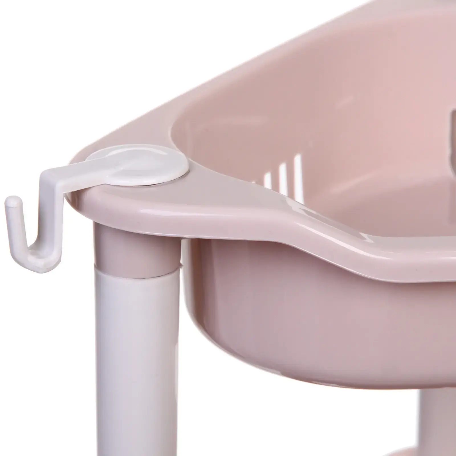 Этажерка предназначена для хранения косметики, книг, игрушек и других мелочей. Она идеально подходит для использования в ванной, спальне или детской комнате. Легкая и компактная, этажерка легко перемещается и устанавливается в любом месте, где это необходимо.