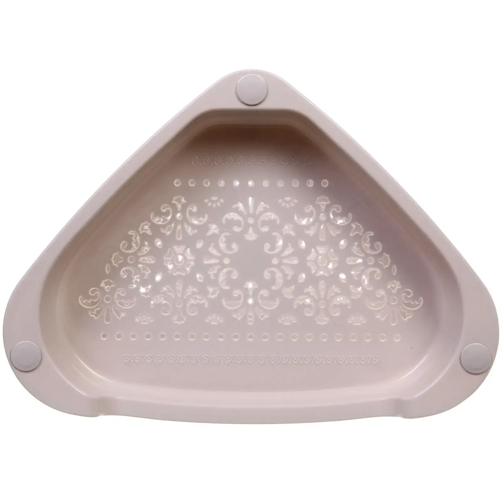 Этажерка состоит из трех секций, что позволяет удобно размещать на ней различные предметы: книги, декоративные элементы, косметику или кухонные принадлежности. Она идеально подходит для использования в ванной комнате, на кухне или в гостиной. Благодаря своей треугольной форме, этажерка эффективно использует угол комнаты, освобождая пространство для других нужд.