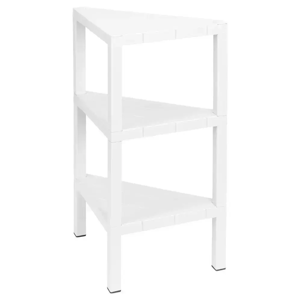 Комплект из 4 идентичных этажерок позволяет создать единую систему хранения в разных зонах помещения. Угловая форма оптимальна для малогабаритных пространств, а белый цвет визуально расширяет границы комнаты.