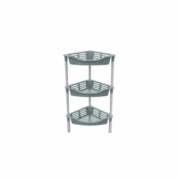 Этажерка угловая "Krita" 3-секционная с корзинами, пластик/металл, цвет: светло-серый