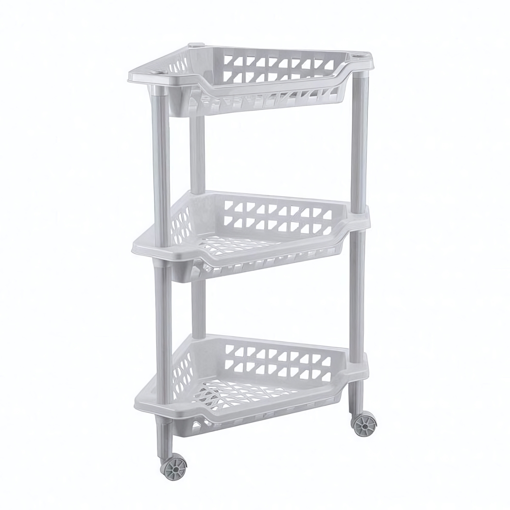 Угловая этажерка «Тереза» с колесиками, 3 полки, 40х27х61 см, пластик/металл, светло-серый