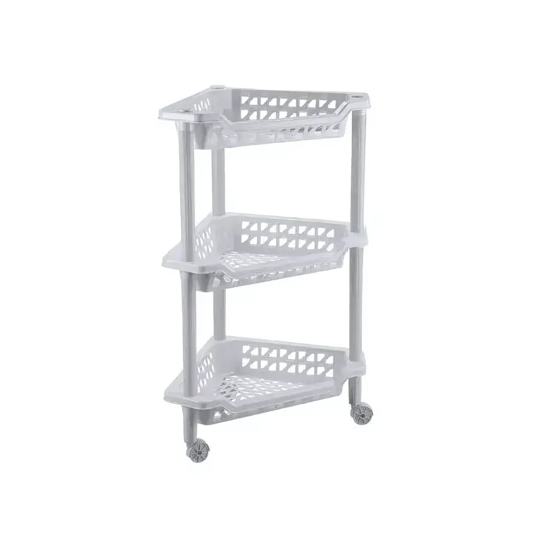 Этажерка угловая «Тереза» на колесах, 3 полки, 40×27×61 см, светло-серый