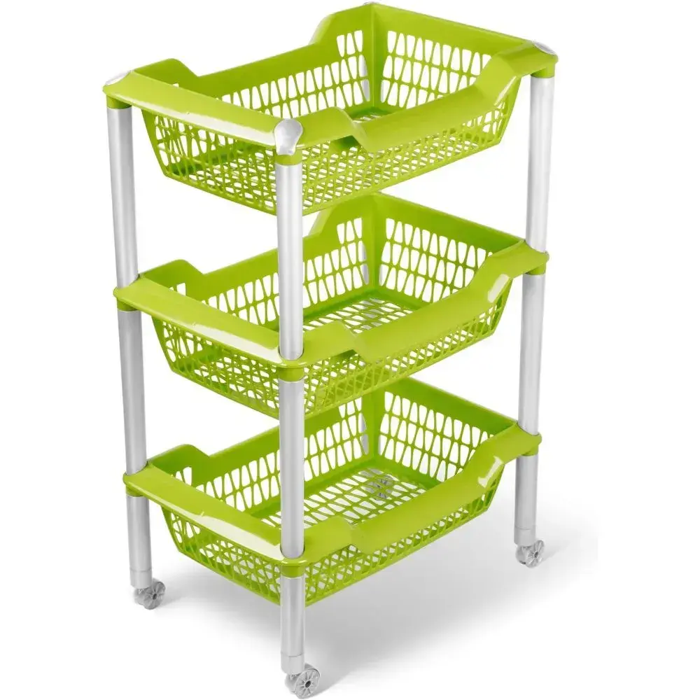 Этажерка-органайзер «Джета» 3 корзины, комплект 4 предмета, пластик/металл, оливковый, колеса