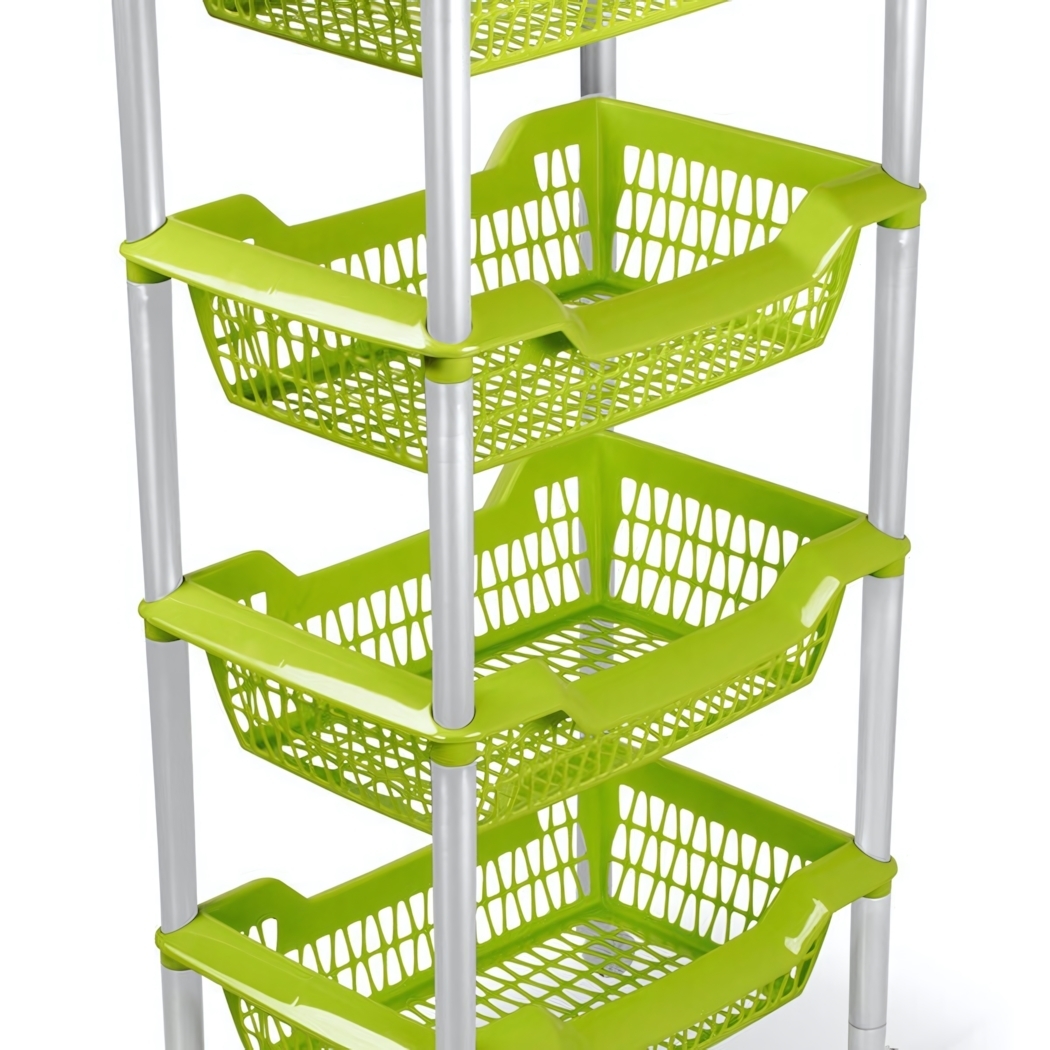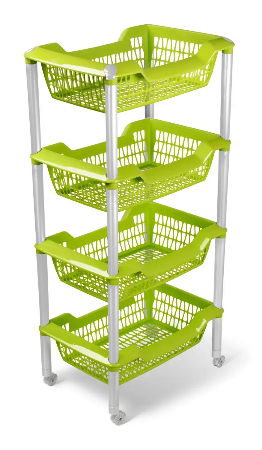 Этажерка оснащена колесиками, что позволяет легко перемещать её по комнате, не прилагая лишних усилий. Корзины выполнены из прочного и влагостойкого пластика, что делает их идеальными для хранения в помещениях с повышенной влажностью. Уход за этажеркой не требует особых усилий — достаточно протереть поверхность обычными моющими средствами без абразивных материалов.