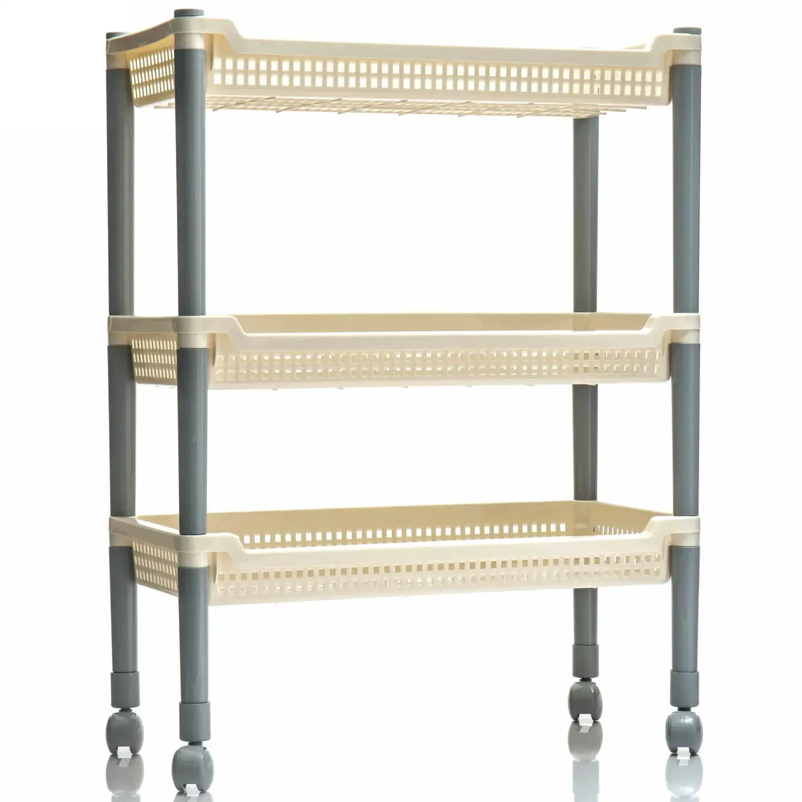 Этажерка предназначена для хранения различных предметов: от косметики и книг до кухонных принадлежностей. Легкий пластиковый материал обеспечивает простоту в уходе и долговечность. Полки имеют перфорированную конструкцию, что способствует хорошей вентиляции и предотвращает накопление пыли. Благодаря колесикам, этажерку легко перемещать, что делает её идеальной для использования в любых помещениях.