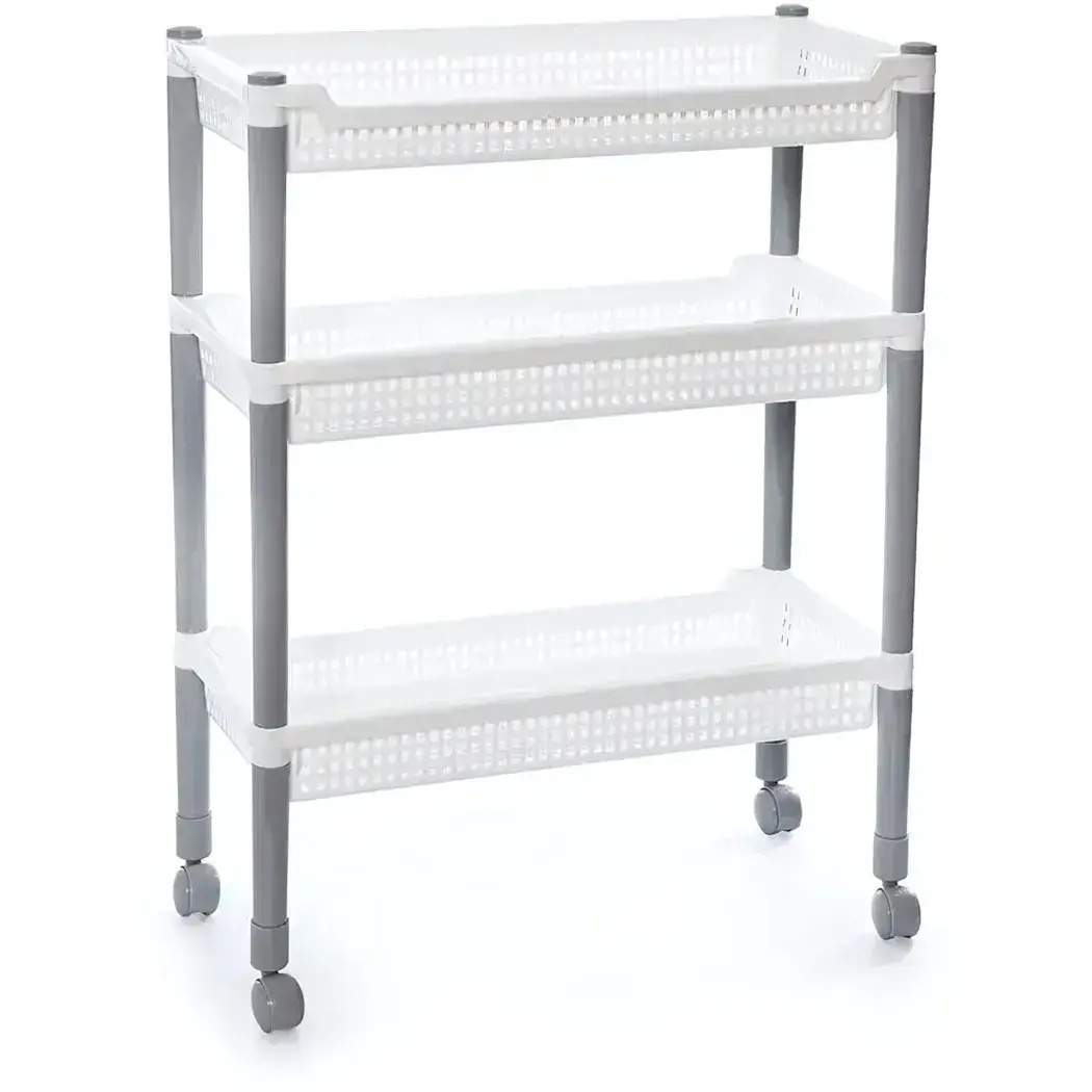 Этажерка узкая «Флёр» 3-секционная, пластик/металл, с роликами для перемещения