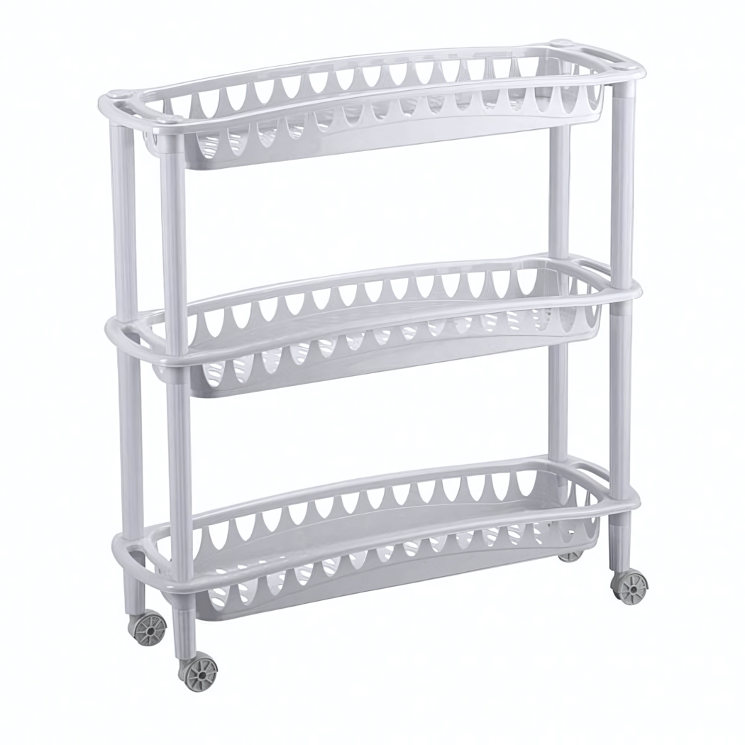 Этажерка предназначена для хранения различных предметов: от средств гигиены и бытовой химии до игрушек и книг. Она станет отличным помощником в организации пространства, позволяя вам быстро находить нужные вещи. Мобильные колесики обеспечивают легкость перемещения, а фиксирующая функция колес позволяет надежно зафиксировать этажерку на месте.
