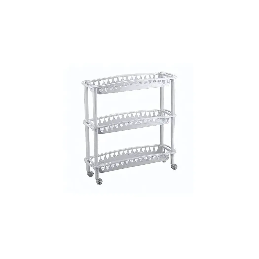 Узкая глубина 18 см позволяет размещать этажерку в проходах и углах. Перфорированные стенки корзин предотвращают скопление влаги, а округлые края пластика безопасны для детей. Универсальный светло-серый оттенок гармонирует с любым стилем интерьера.
