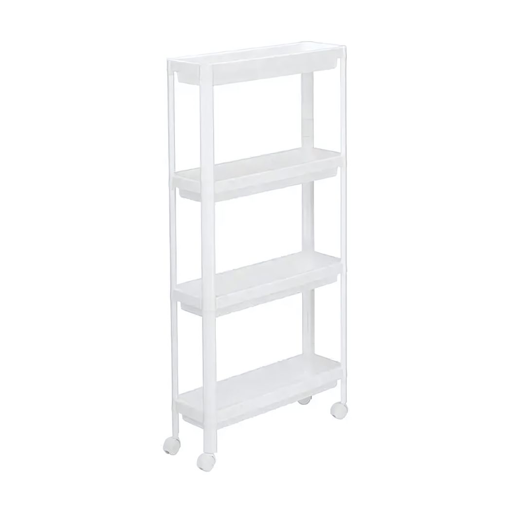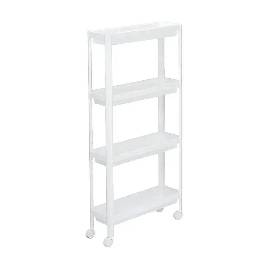 Этажерка узкая на колесах, 4 секции, пластик белый, для компактного хранения