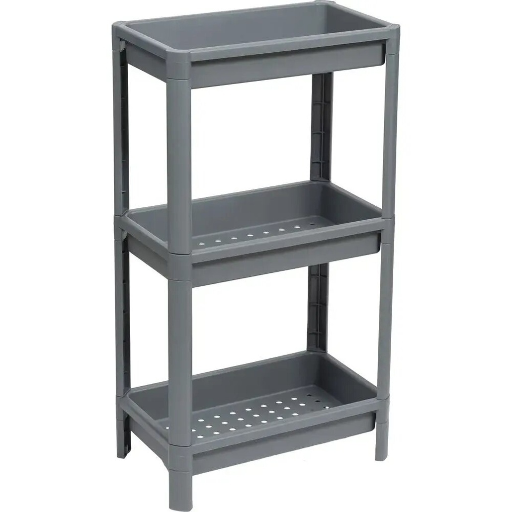Этажерка "VIKEA" 3-ярусная широкая, пластик, серый цвет, для компактного хранения