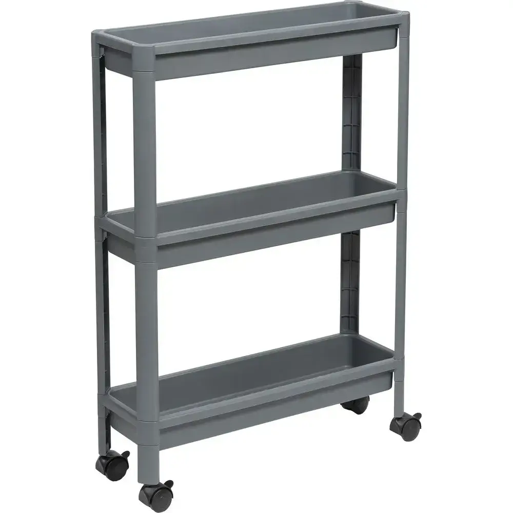 Этажерка узкая 3-ярусная на колесах с фиксаторами, пластик, серый, 45х30х80см