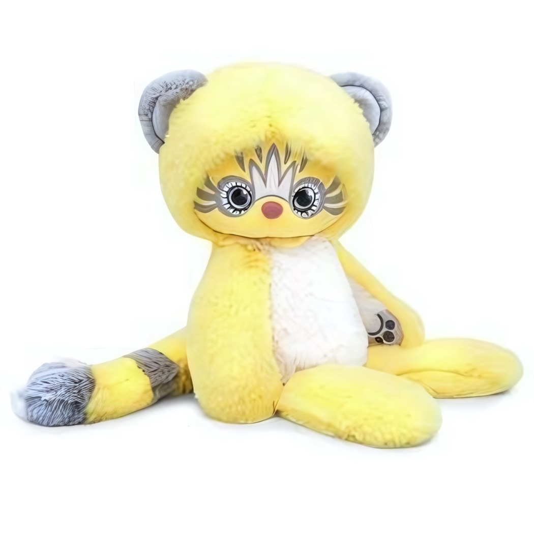 Представляем мягкую игрушку 'Эйка' — яркого персонажа, который станет идеальным другом для вашего ребенка. Сочетание нежного желтого цвета, детализированного лица и полосатого хвоста делает ее не только милой, но и запоминающейся.