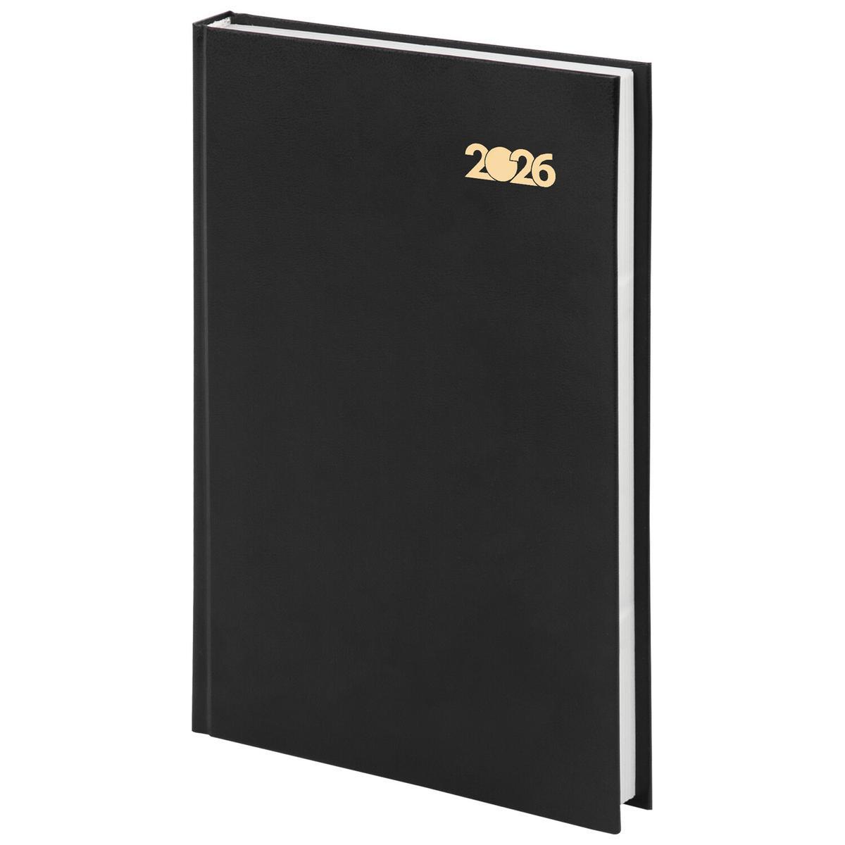 Ежедневник датированный 2026, А5, черный бумвинил, 145х215мм