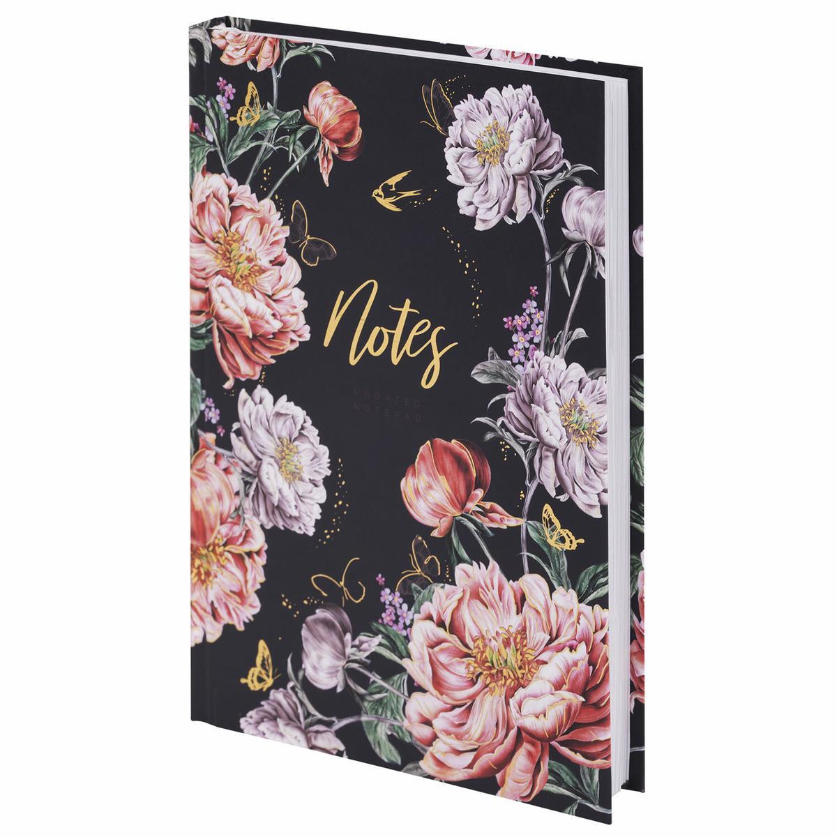 - Цветочный мотив и золотой шрифт «Notes» придают профессиональный и одновременно лёгкий вид.