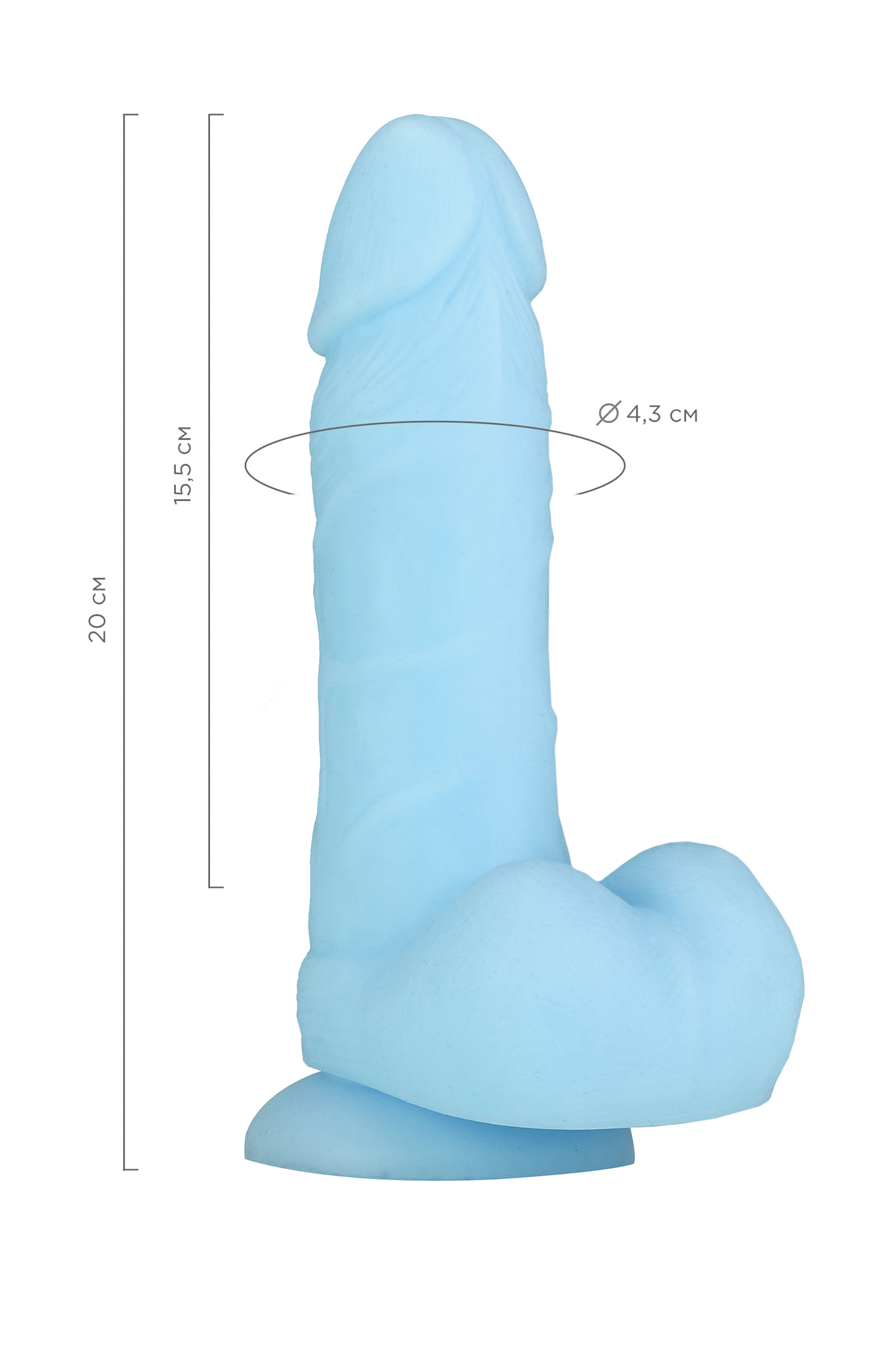 Фаллоимитатор 'Arthur', голубой, 20см, жидкий силикон, с присоской