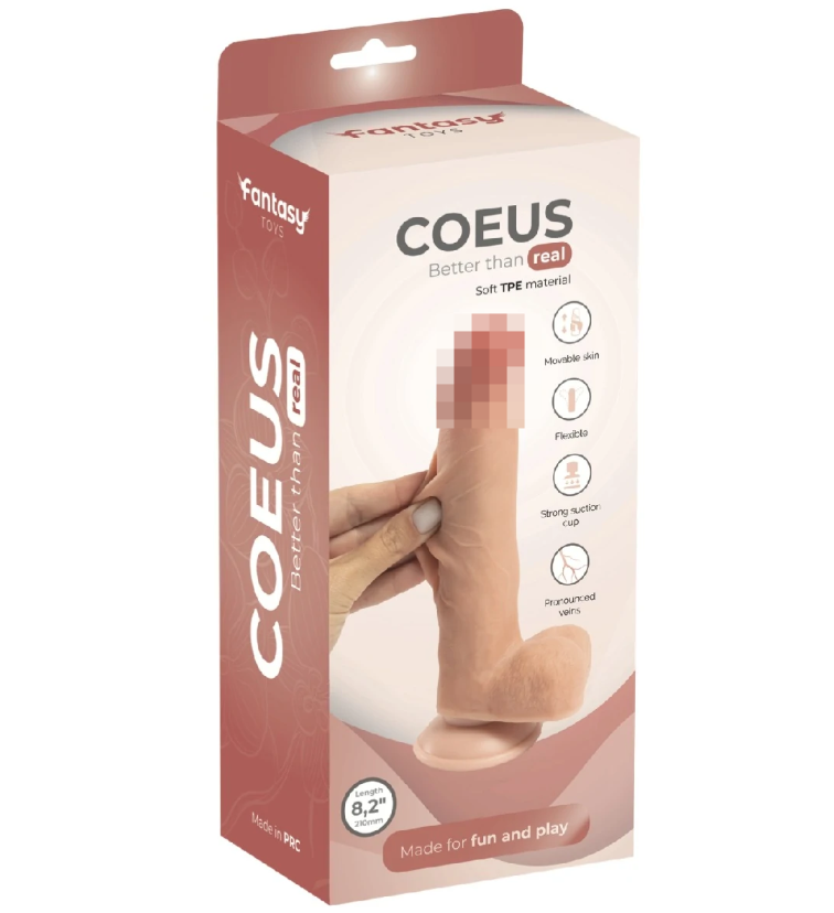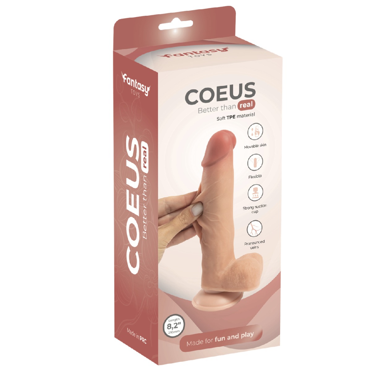 Фаллоимитатор Coeus подвижная кожа, 21 см, диаметр 4 см, цвет телесный, прочная присоска, материал TPE