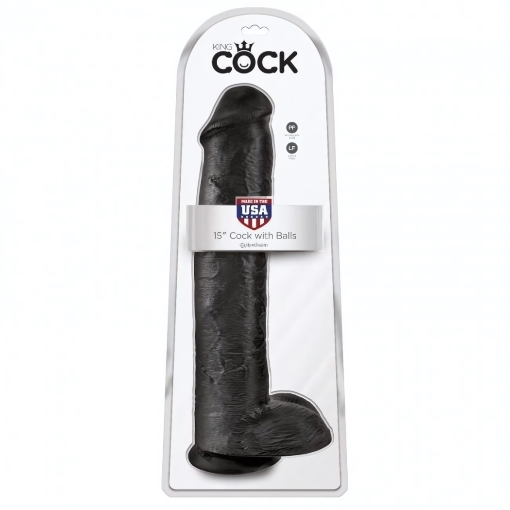 Фаллоимитатор «King Cock 15» с текстурированной поверхностью, черный, ПВХ, длина 40.6 см