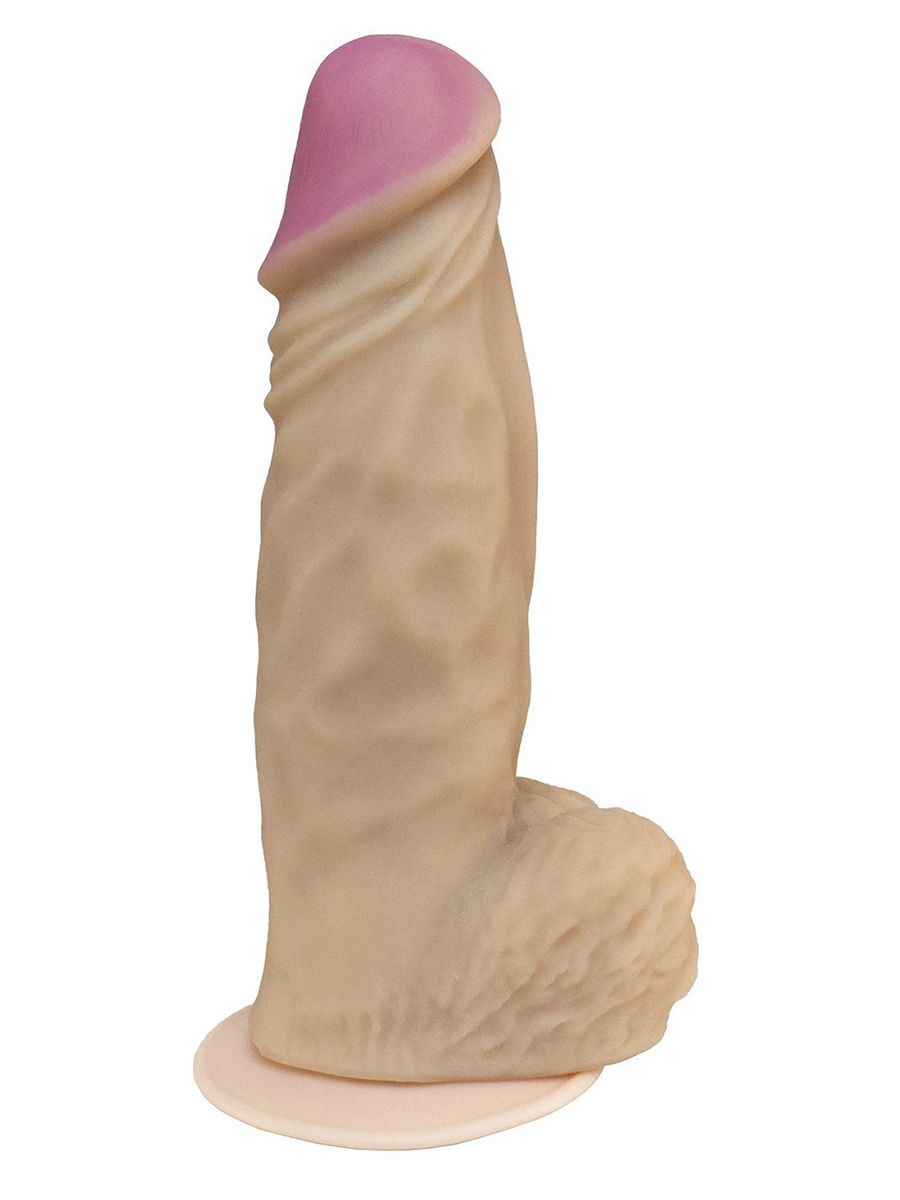 - Высокая реалистичность: Изделие тщательно повторяет анатомические формы, включая выраженную головку с розовым оттенком и рельефную мошонку, что усиливает визуальное и тактильное восприятие.