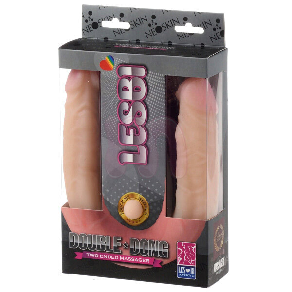 Двусторонний фаллоимитатор «Lesbi» из киберкожи, 47 см, диаметр 4 см, бежевый