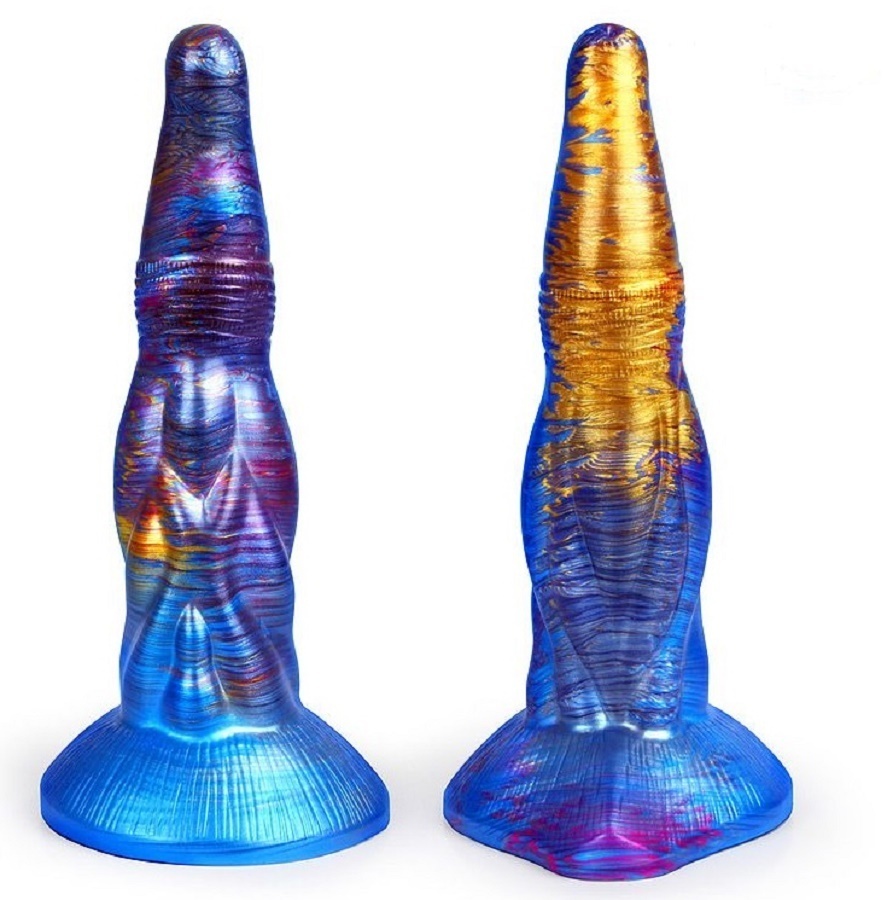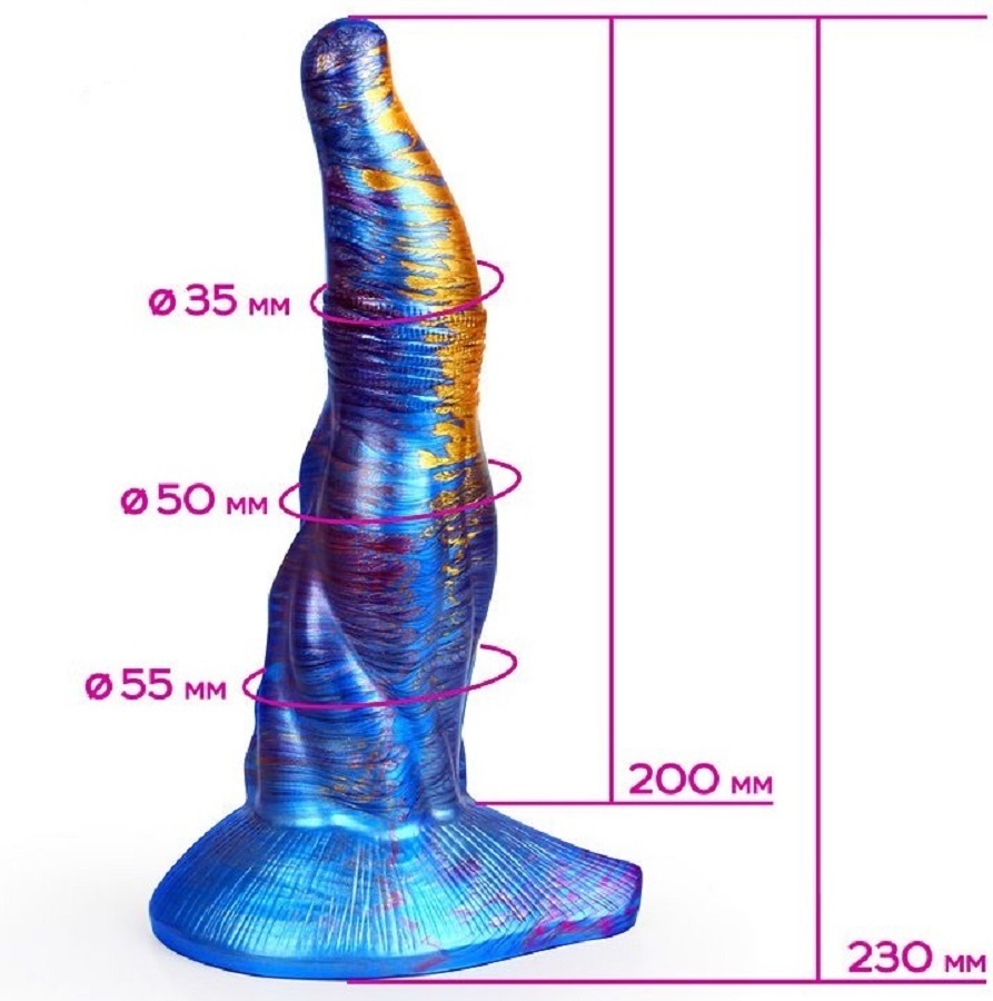 Общая длина 23 см (рабочая часть 20 см) с постепенным увеличением диаметра от 3.5 до 5.5 см. Переходы толщины создают эффект волнообразной стимуляции, а градиентная расцветка добавляет эстетики.