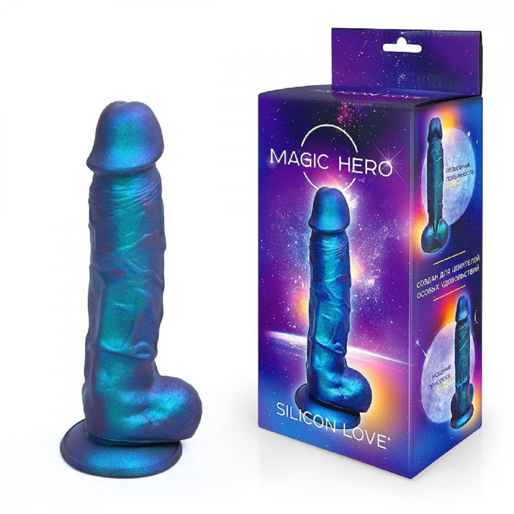 Фаллоимитатор Magic Hero создан для тех, кто ценит насыщенные тактильные ощущения и комфорт в использовании. Перламутровый синий оттенок с переливами делает модель визуально притягательной, а продуманная форма с выраженной головкой и мошонкой усиливает естественность ощущений. Это отличный выбор как для сольных практик, так и для разнообразия в паре.