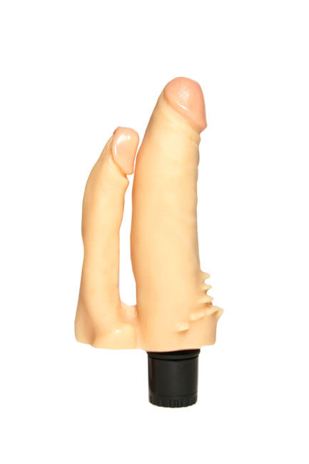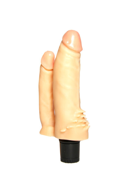 Двойной фаллоимитатор с вибрацией, ПВХ, 17/12 см, телесный цвет, эргономичный дизайн