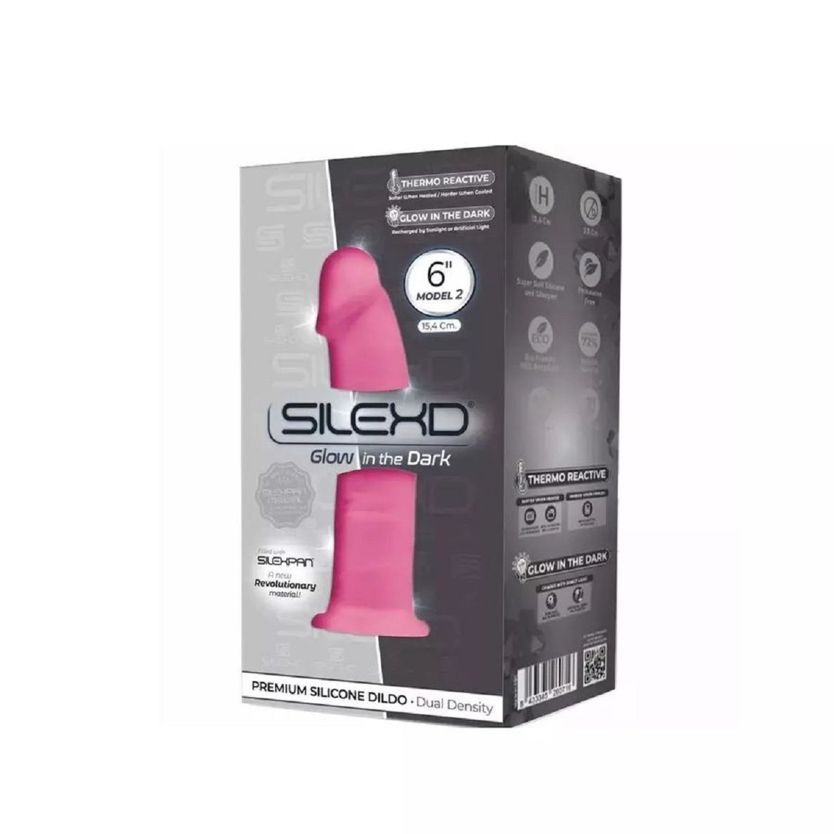 Фаллоимитатор «SileXD Model 2» с Silexpan, термоактивный, светящийся в темноте, розовый, 15,4 см